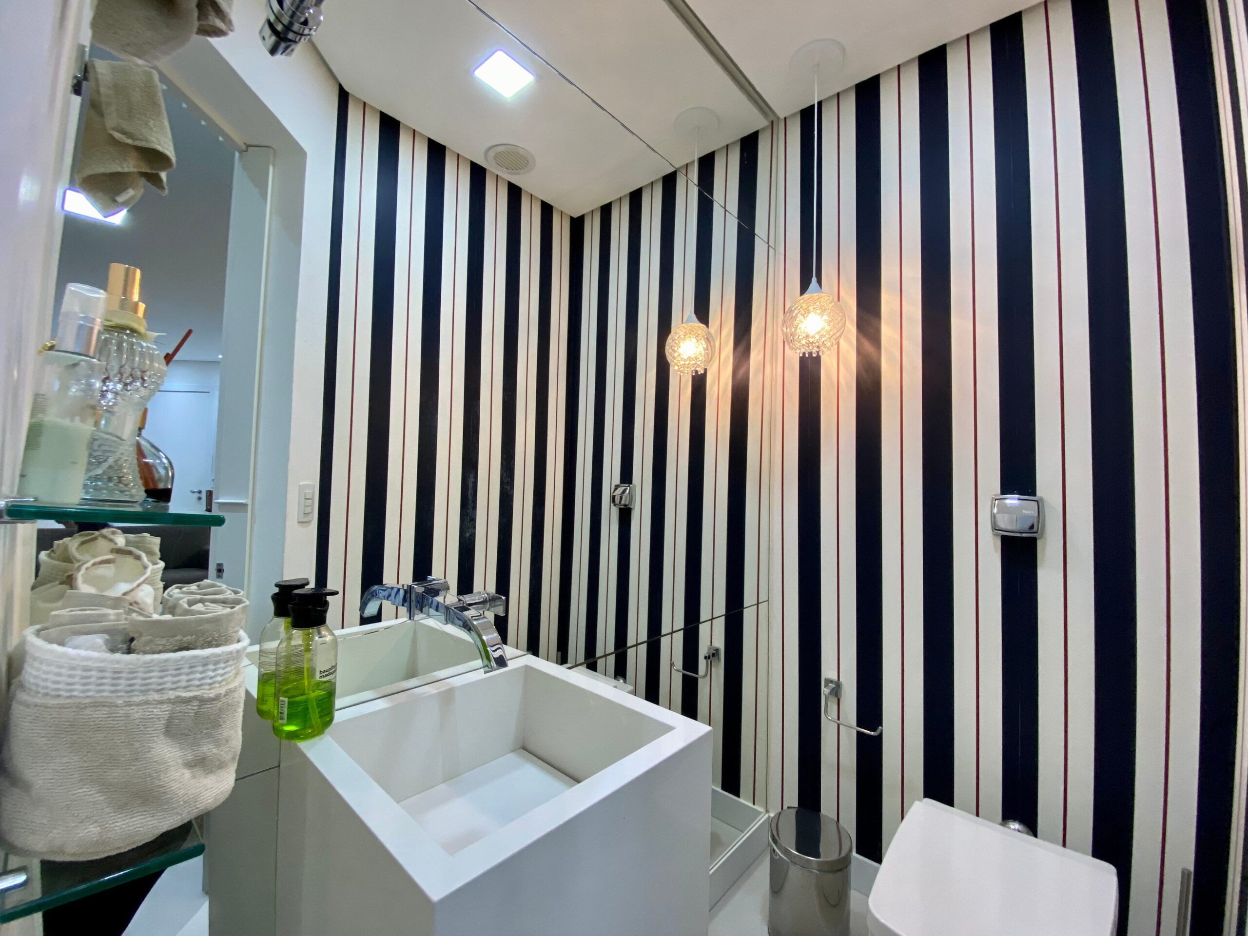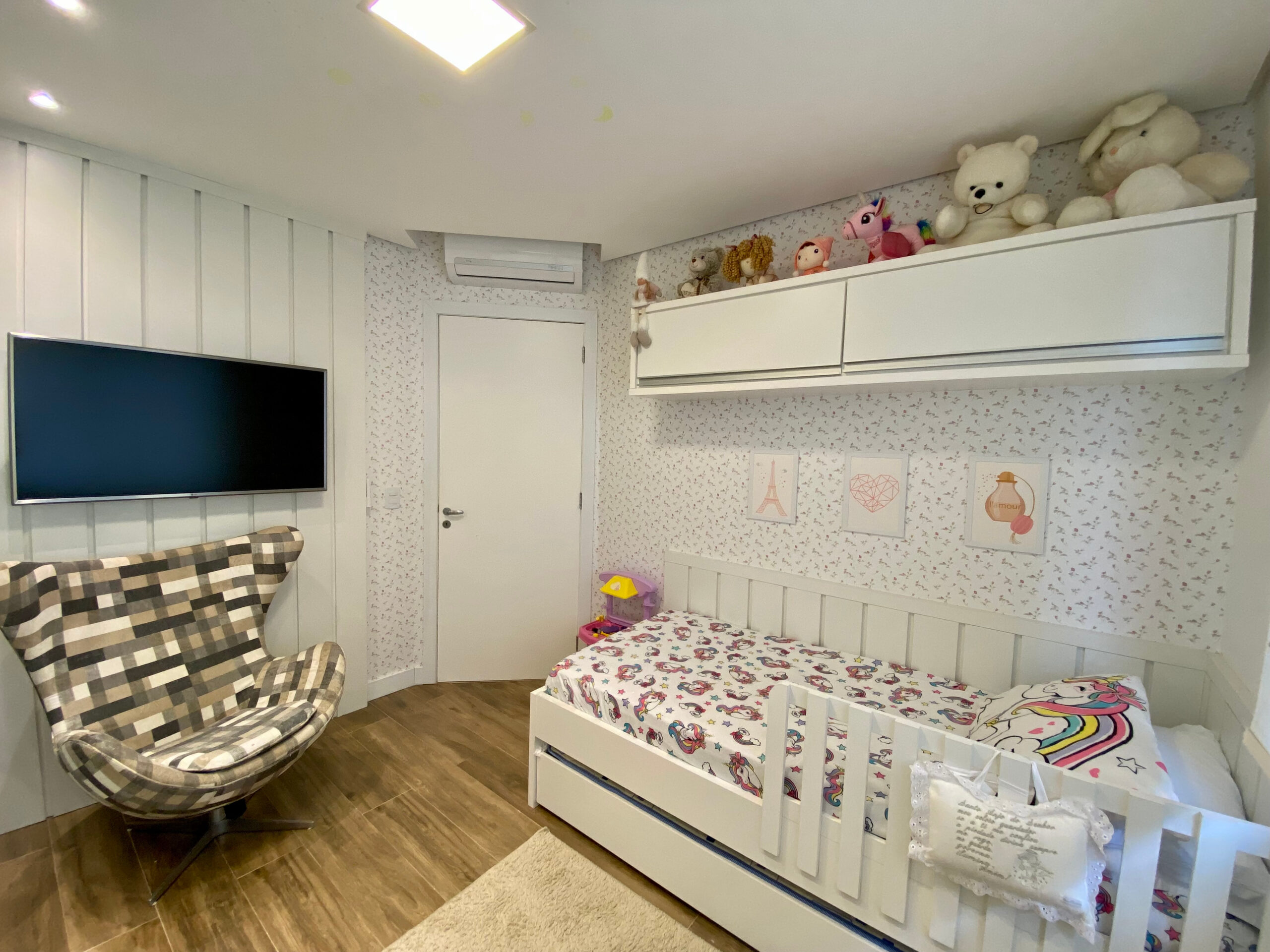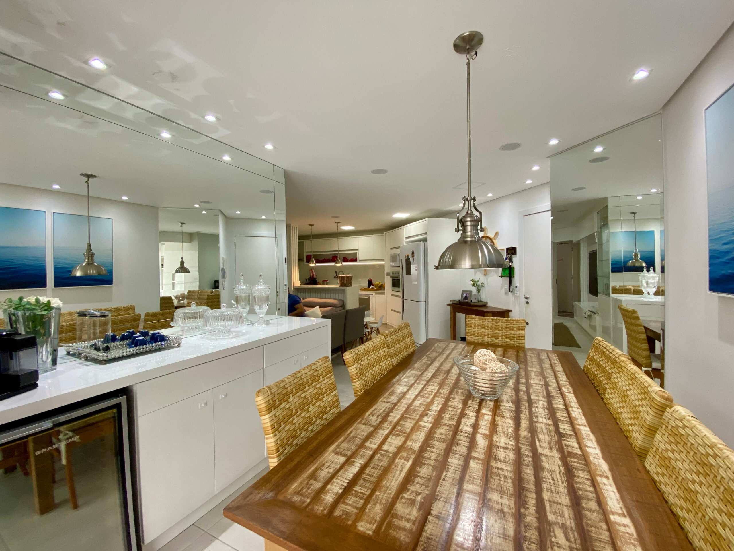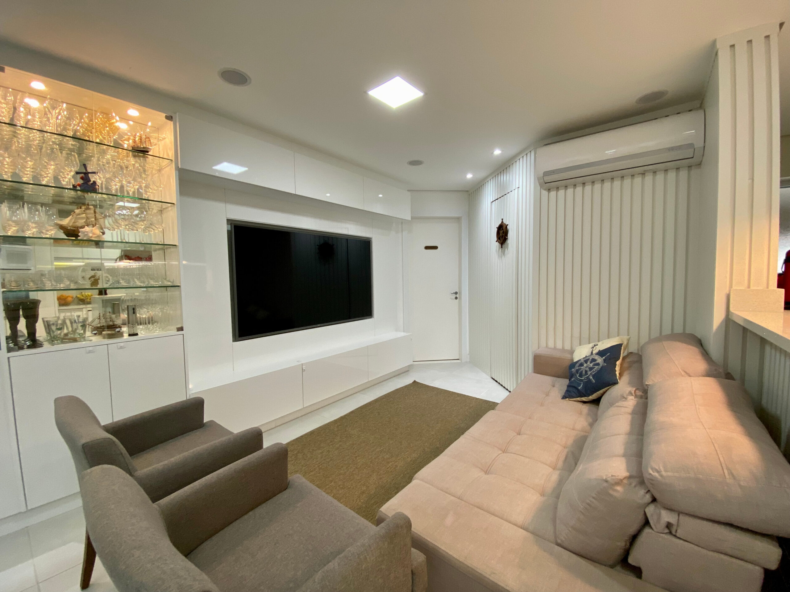 Sistema de som integrado nas salas, split instalados nos ambientes.