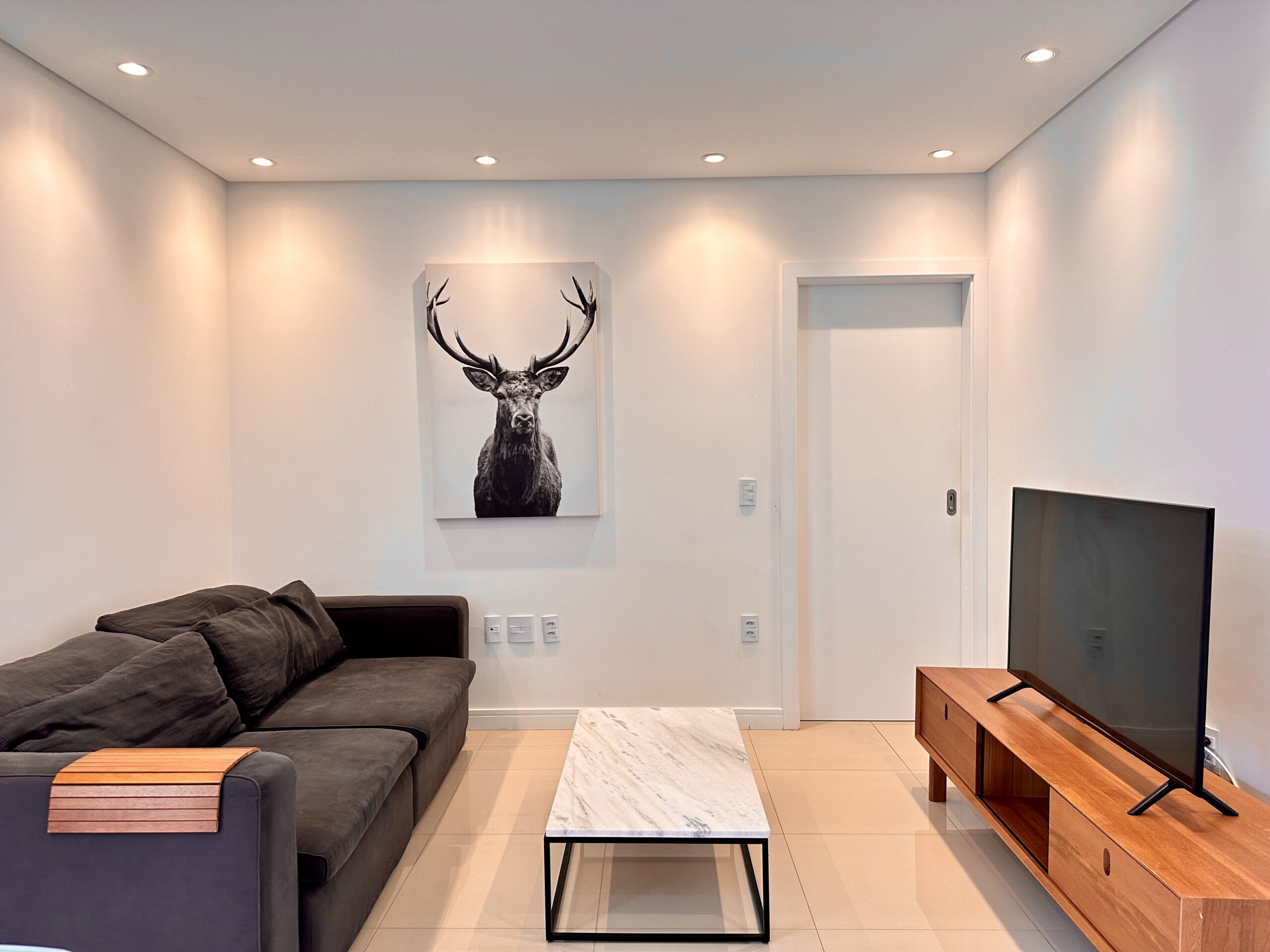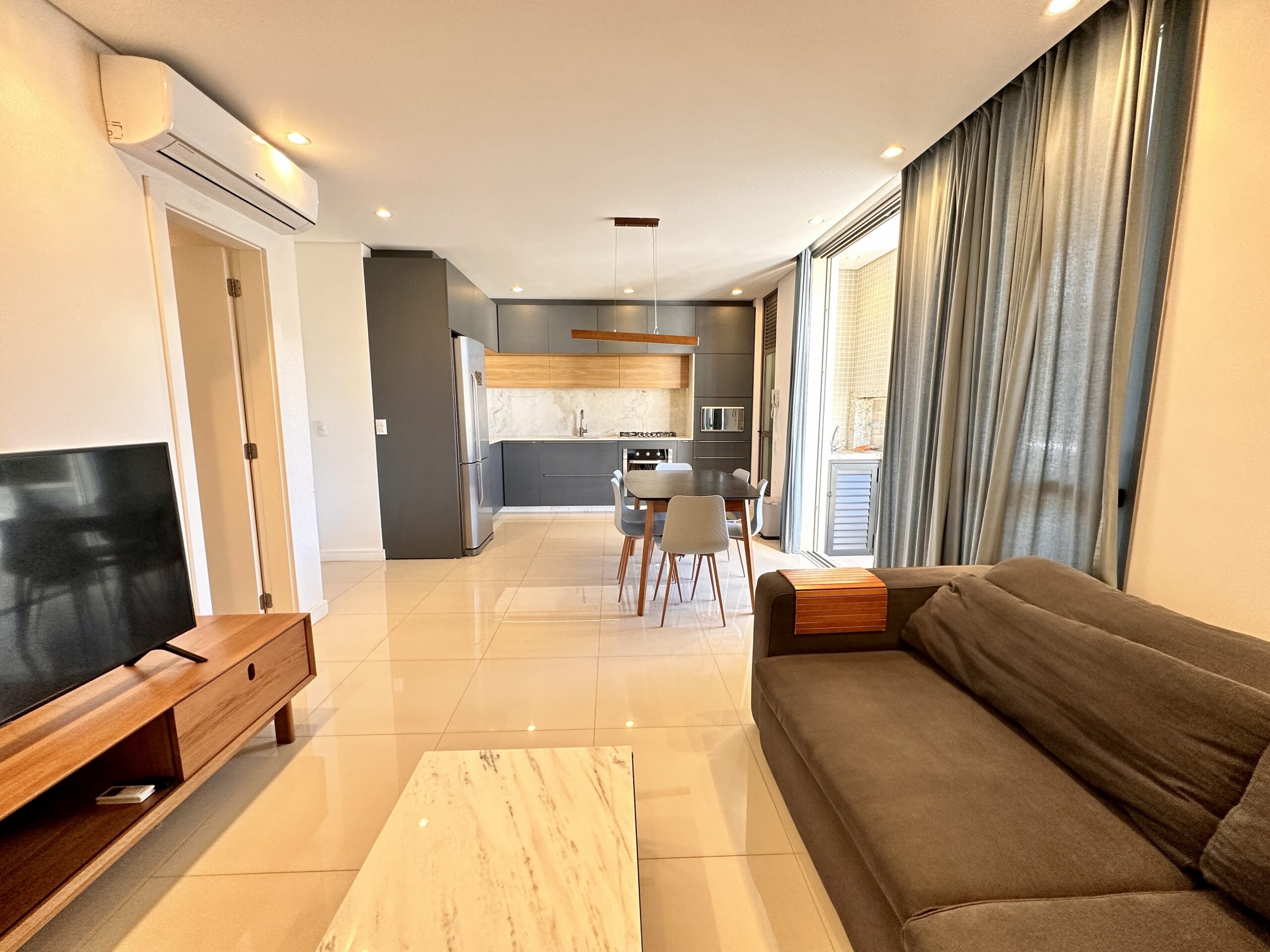 Apartamento 3 quartos, sendo 1 suíte, muito bem localizado em Jurerê, com possibilidade de ir à farmácia, restaurante, padaria, e supermercado sem tirar o carro da garagem.