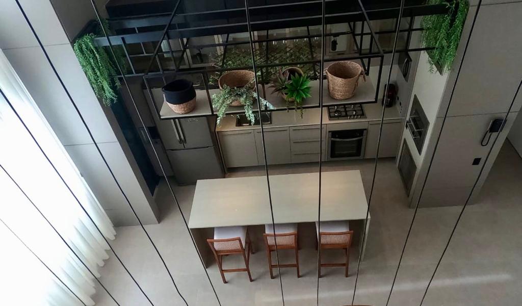 Com 206 m2 de área privativa, esse lindo apartamento possui uma área de convivência muito espaçosa e agradável. Sala de jantar e cozinha integradas com uma bela vista para o Amoraeville.