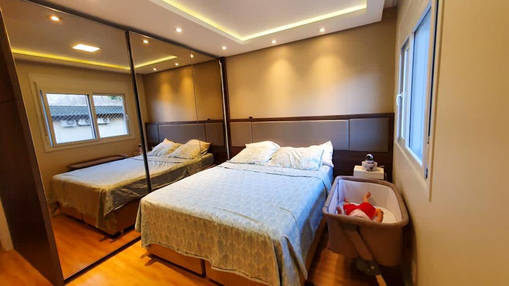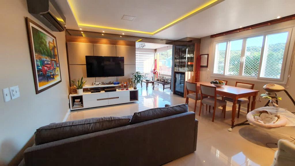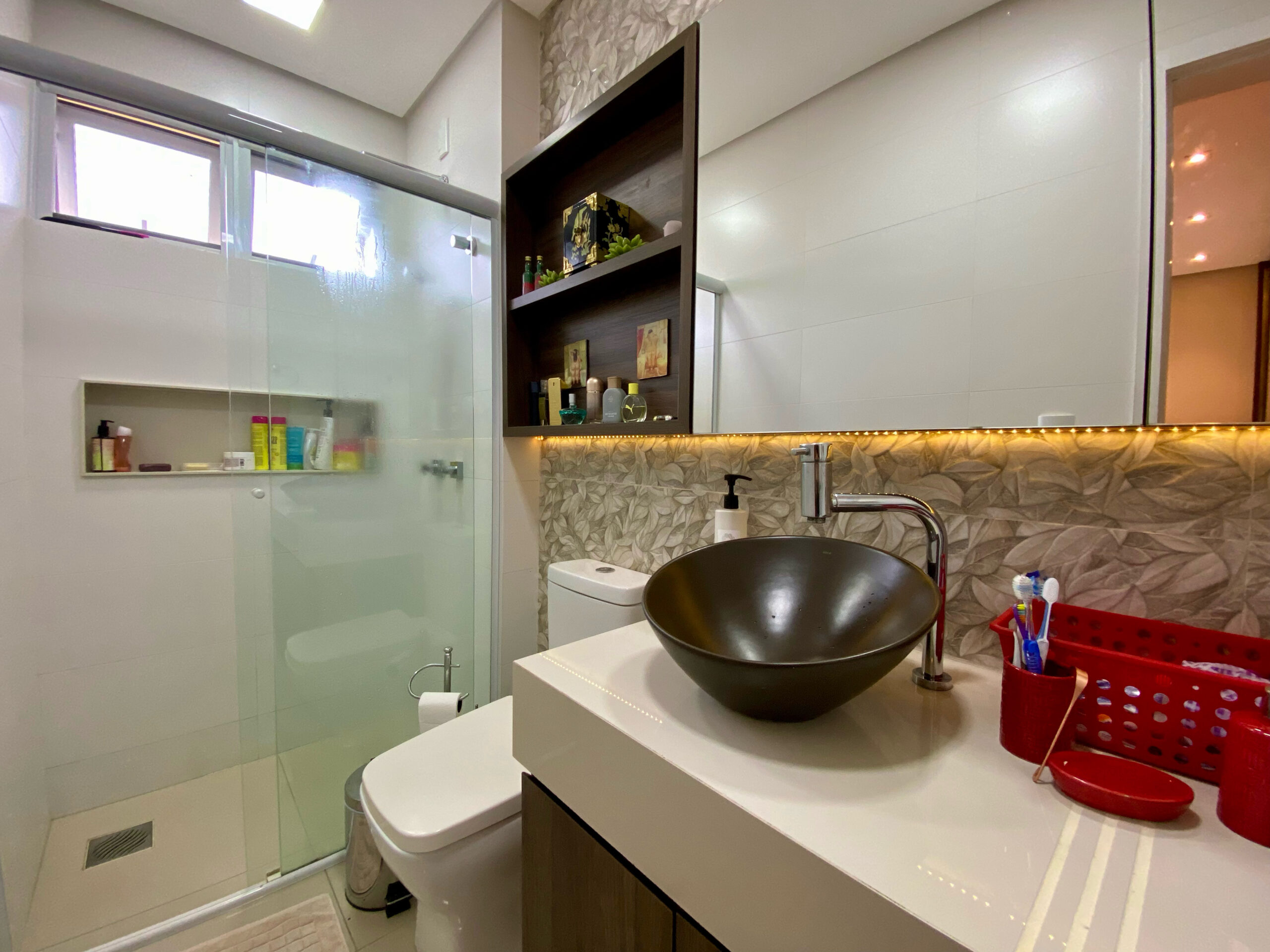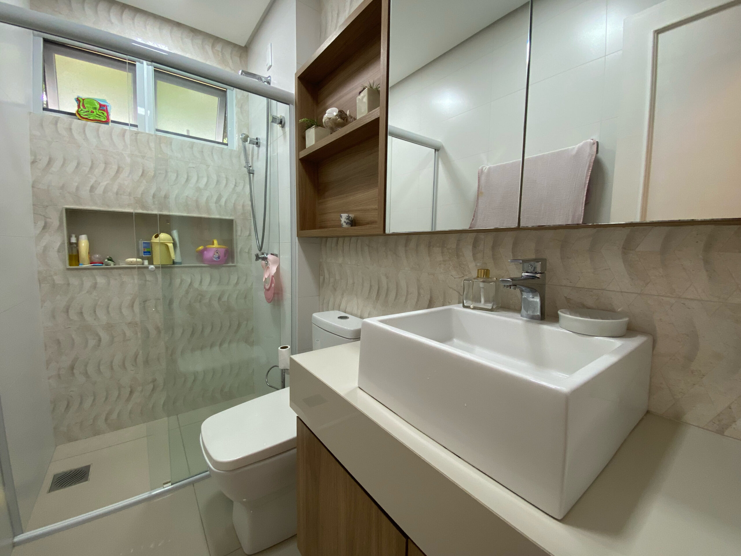 São 3 quartos, um sendo suíte, distribuídos em 100 m2 de área privativa. Cozinha e sala ampla integrada com uma bela sacada com churrasqueira. Ar condicionado em todos os ambientes.