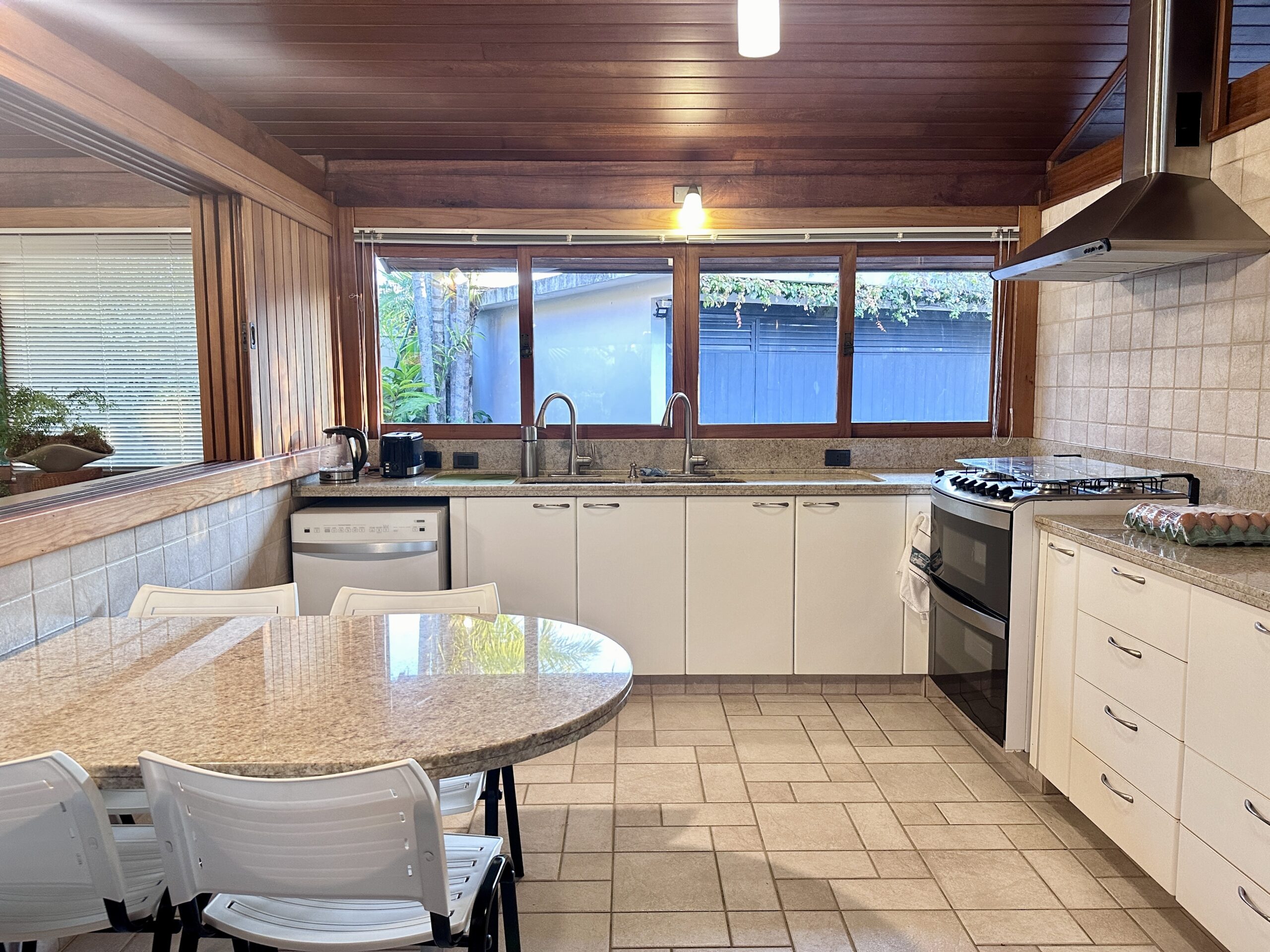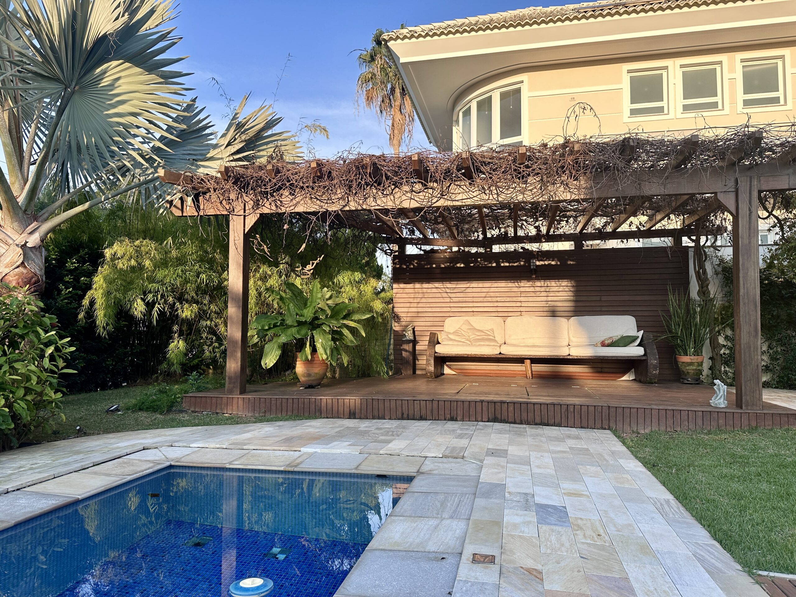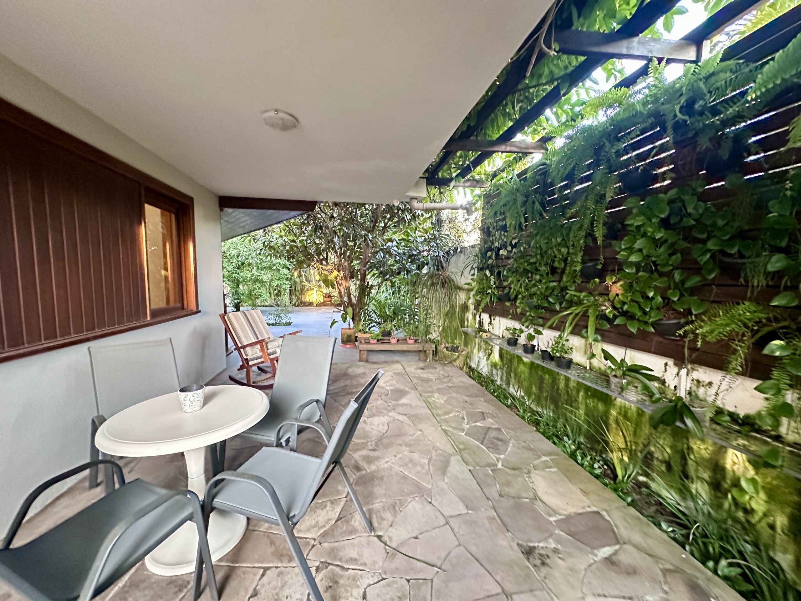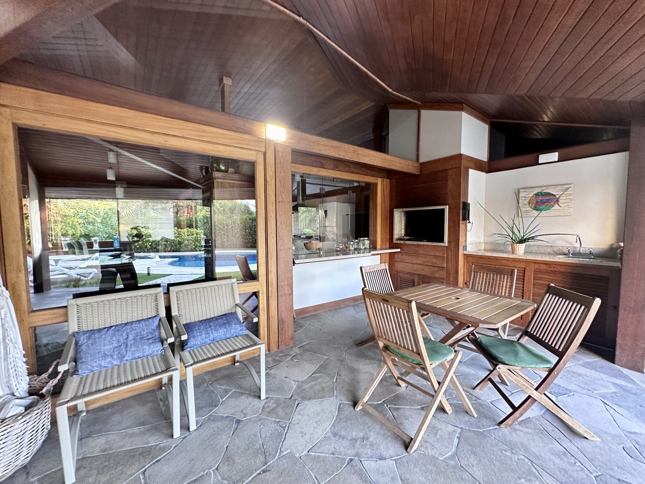 A apenas 350 metros da praia, a casa está localizada na principal avenida de Jurerê Internacional.