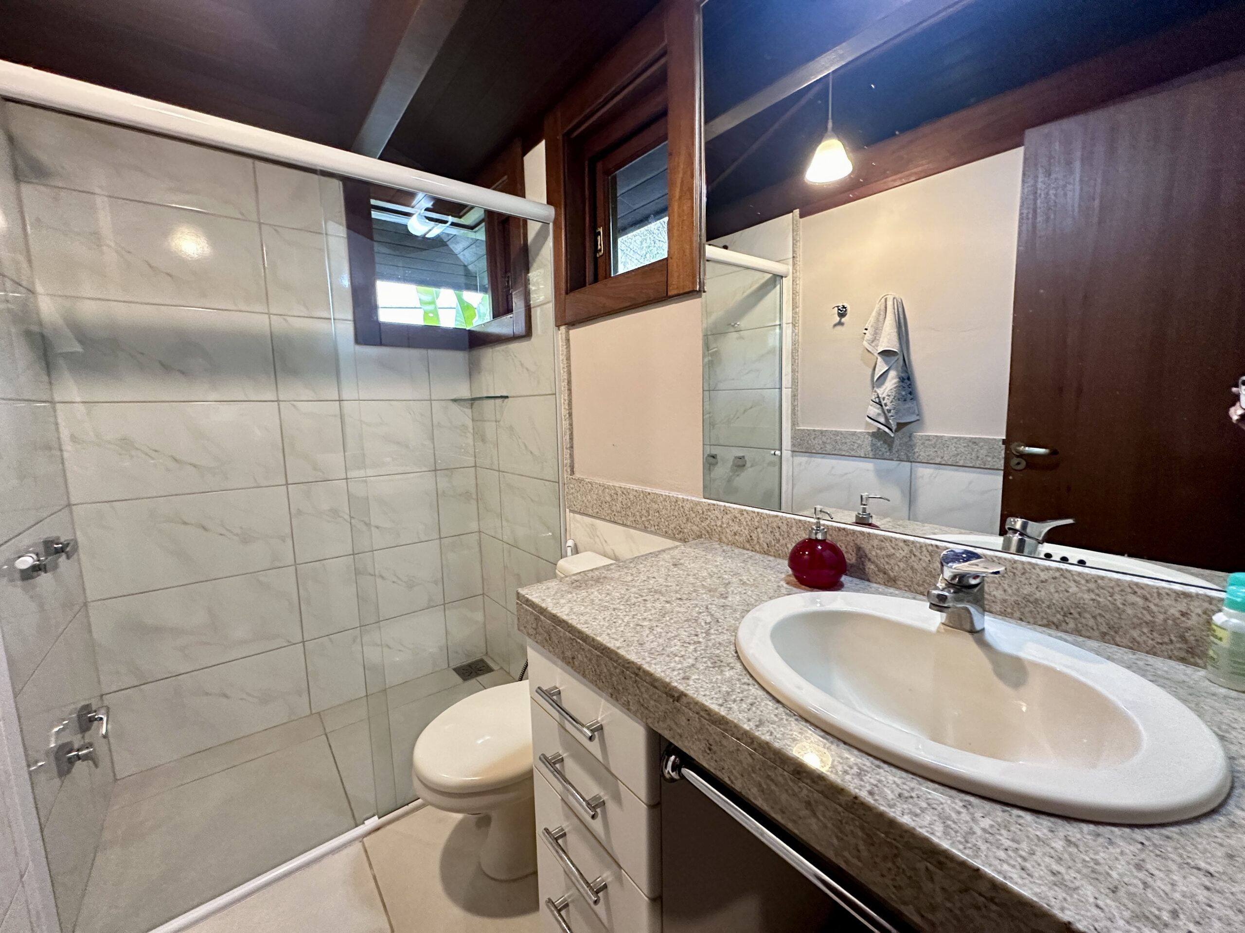 São 3 suítes, todas localizadas no primeito pavimento. Segundo pavimento com sala de televisão e sacada.