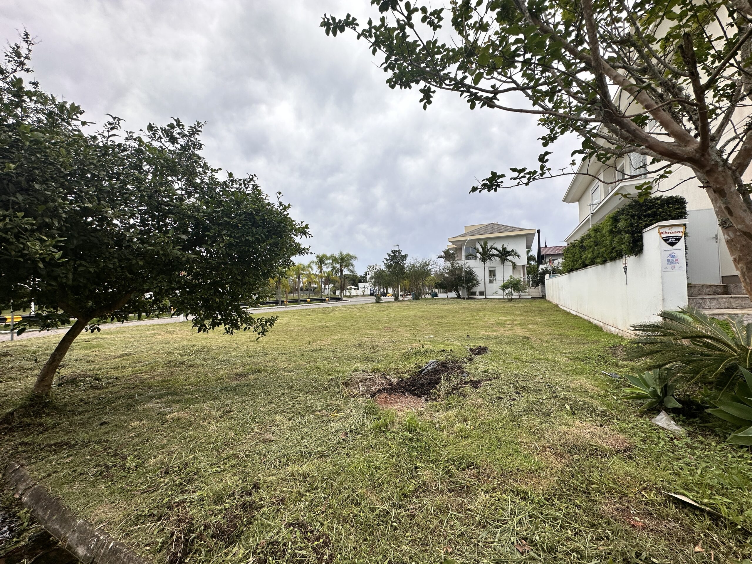 Terreno de esquina com 450 m2, frente do terreno para uma rua tranquila e fundos do terreno voltado para alameda.